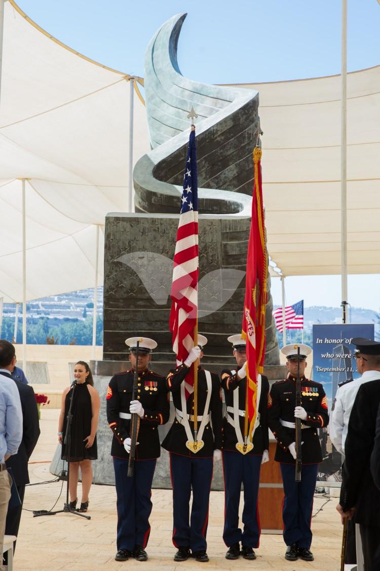 US Marines commemorate the September 11th attacks at the Jerusalem Living Memorial to 9/11.