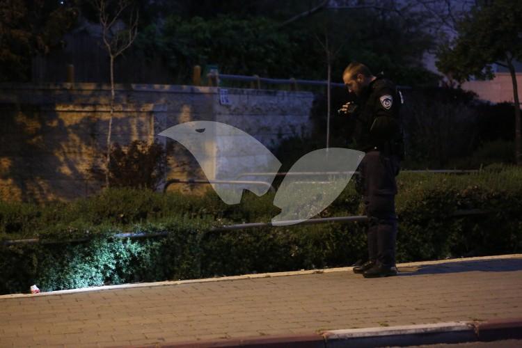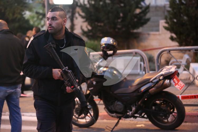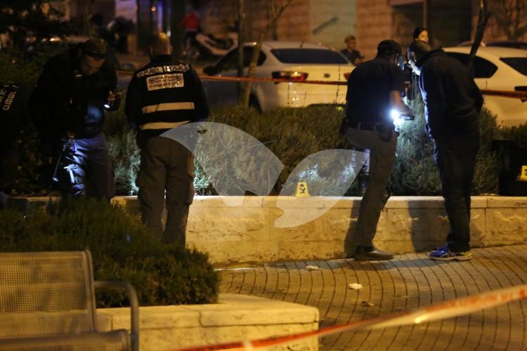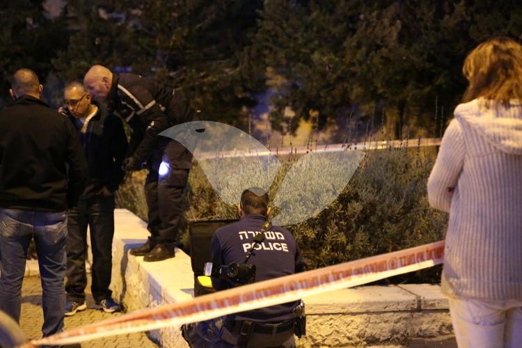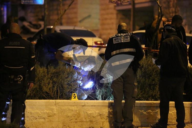 Police officers investigating the scene of the shooting of a 25-year-old Israeli in the jerusalem ne…