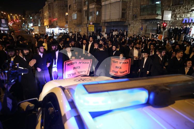 Ultra-Orthodox Protest Against Military Conscription in Bar-Ilan Junction, Jerusalem