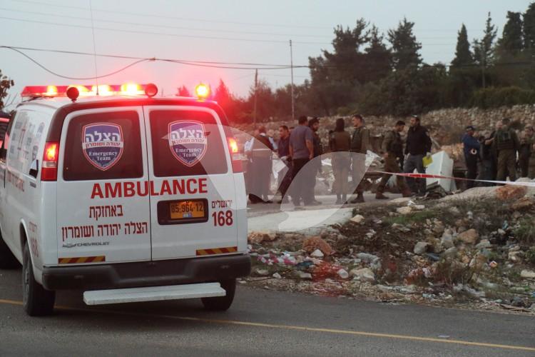 Ambulance arriving on the scene vehicular terror attack in Halhul junction 4.11.15