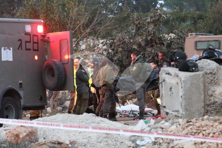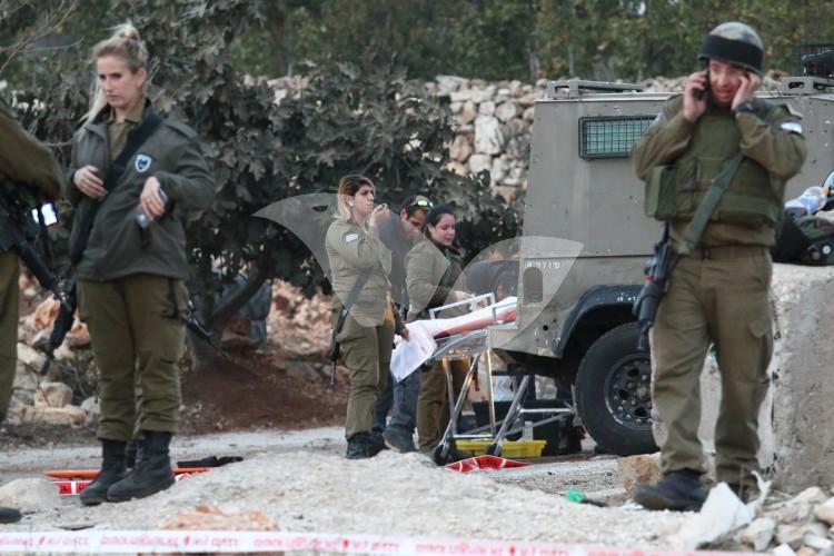 IDF paramedics and soldiers on the scene of the vehicular terror attack in Halhul junction 4.11.15