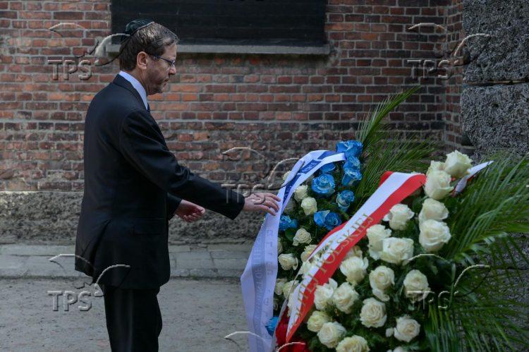 Herzog and Duda visited Auschwitz’s Jewish Pavilion and viewed the Book of Names, which documents the names of Jews murdered in the Holocaust. Later, they made joint statements to the press.