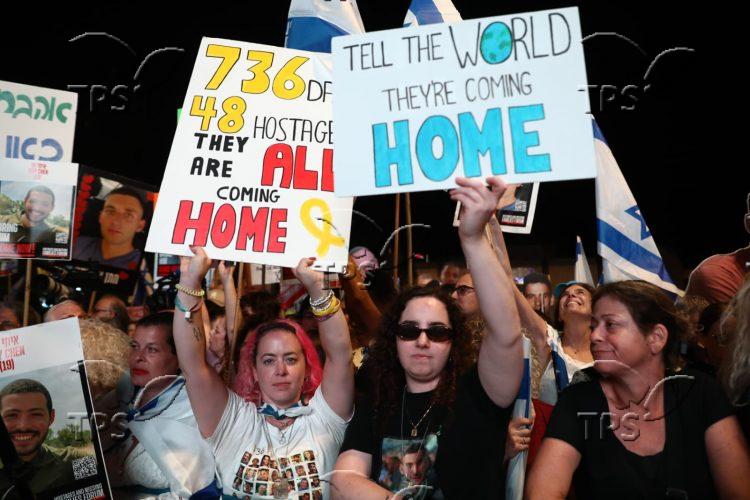 Jerusalem, 12 October, 2025 (TPS-IL) -- A huge crowd filled “Hostages Square” in Tel Aviv tonight for a spectacular gathering. Participants expressed hope that it would be the last rally of its kind, as everyone hopes that the hostages will return as provided for in the agreement to end the war in Gaza. And that, despite the remaining gaps in the next stages of the talks.