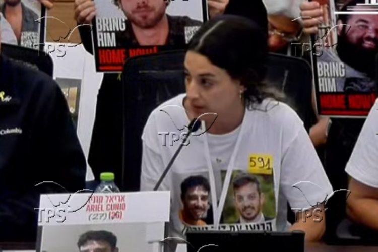 “Do you think it makes sense that I should cry out for the freedom of my beloved Ariel, his brother David, and the rest of the hostages? They are there as hostages for the lives of the terrorists and the survival of the Netanyahu government,” she told lawmakers.