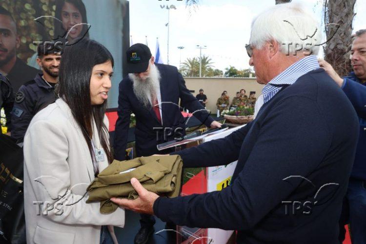 Ten new soldiers took the IDF’s oath of allegiance, and ten soldiers with cerebral palsy from the Tsad Kadima school in Jerusalem received certificates of merit. Music was provided by soldiers from the Special in Uniform band.