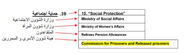 According to PMW, in each monthly budget report since February 2020, the Arabic version has included a line for “Commission for Prisoners and Released” (see translated image below), while the English version includes no such line item.