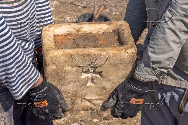 “We found the marble block inside a hall used for baptism at the church. We did not know what it was at first, but we believe it was used to hold three different oils during a three-stage baptismal immersion process,” Dr. Michael Eisenberg of the Institute of Archaeology at the University of Haifa, who has directed excavations at the site for years, told TPS-IL.