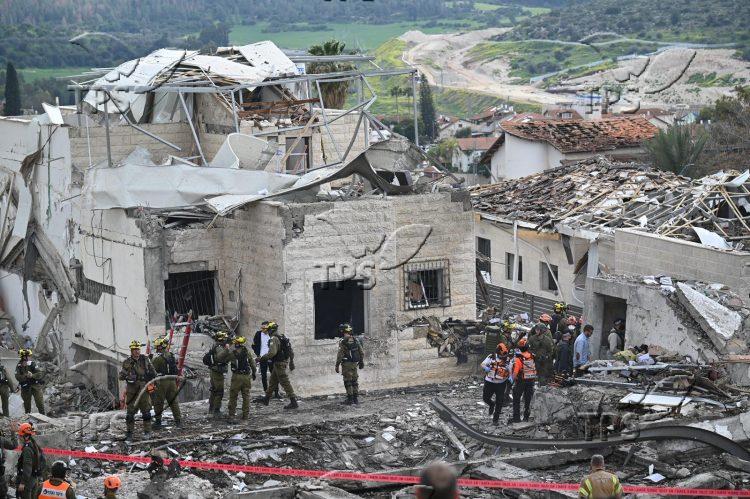 The missile caused extensive destruction, with several buildings damaged or partially collapsed. Firefighters, search-and-rescue units and military medics were dispatched to the area, supported by a helicopter used to evacuate the injured.