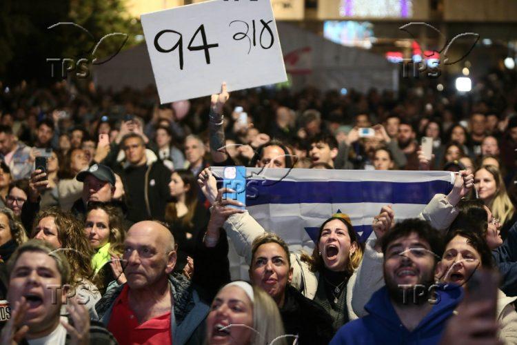 But at Tel Aviv’s Hostage Square, local resident Danny Shek told TPS-IL, “These are the first [pieces of] good news in many, many months. On the one hand, when looking at the continuation of this process, there are still many tears to cry. But there’s excitement tonight, enormous excitement. These are three [people] who have been part of our lives virtually, for so, so long.”