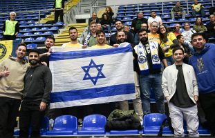 Maccabi Tel Aviv fans cheer as their team defeated Monaco 91-88 during a Euroleague Final Four match in Belgrade, Serbia on March 13, 2025. Photo by TPS-IL