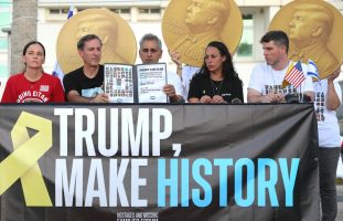The families of Israeli hostages demonstrate outside the US consulate in Tel Aviv on Sept 2, 2025. Photo by Gideon Markowicz/TPS-IL