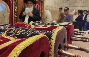Checking the Torah scrolls in the Western Wall