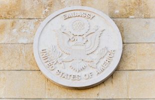 A plaque on the wall of the United States embassy building in Jerusalem on March 5, 2024. Photo by Elad Zagman/TPS