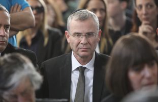 Minister of Justice Yariv Levin at the funeral of Beer-Sheva District Court, Judge Benny Sagi in Tel Aviv on Jan. 5, 2026. Photo by Gideon Markowicz/TPS-IL