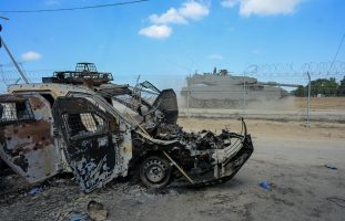 Scenes of destruction at Kibbutz Nir Oz on Oct. 17, 2023, in the aftermath of Hamas' Oct. 7 attack. Photo by Tsuriya Zeevi/TPS