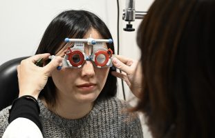 A woman in Jerusalem gets her eyes checked by an optometrist on April 8, 2024. Photo by Yoav Dudkevitch/TPS
