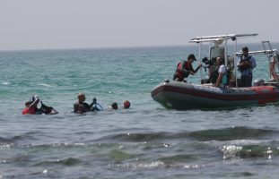 Israeli authorities on April 22, 2025 search for a man who disappeared in an apparent shark attack off the coastal city of Hadera. Photo by Sharon Leibel/TPS-IL