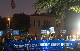 Israelis protest outside the U.S. Consulate in Jerusalem on Nov. 3, 2021. Photo by Maayan Berrebi/TPS