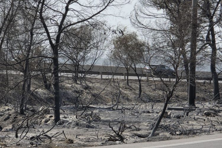 Jerusalem, 4 May, 2025 (TPS-IL) -- The blackened remains of an area of the Jerusalem Hills scorched by recent wildfires on May 4, 2025. Photo by TPS-IL