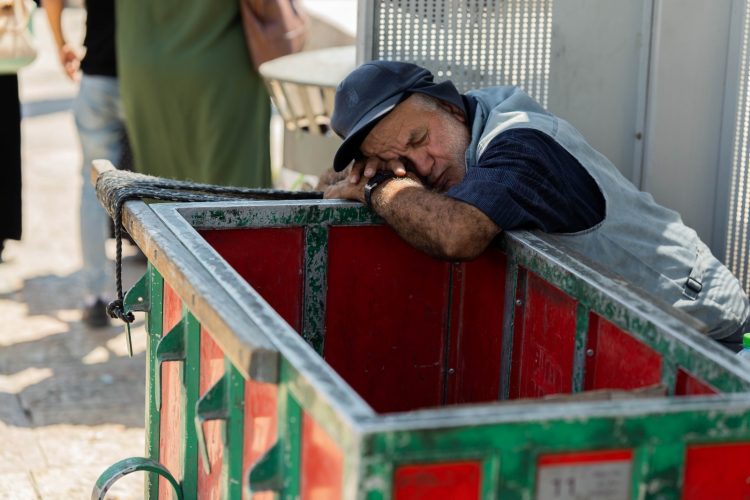 An Arab Vendor in the Old City of Jerusalem with Little Business Monday Dozes Off