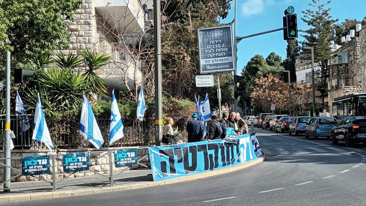 Anti-Government Protestors Near PM Residence in Jerusalem – Sign Reads Democracy