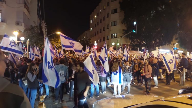Anti-Government Protestors on Dizengoff Street in Tel Aviv Thursday Night
