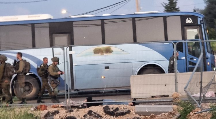 Captured Woman Terrorist who Stabbed Person at Gush Intersection Lying on Ground