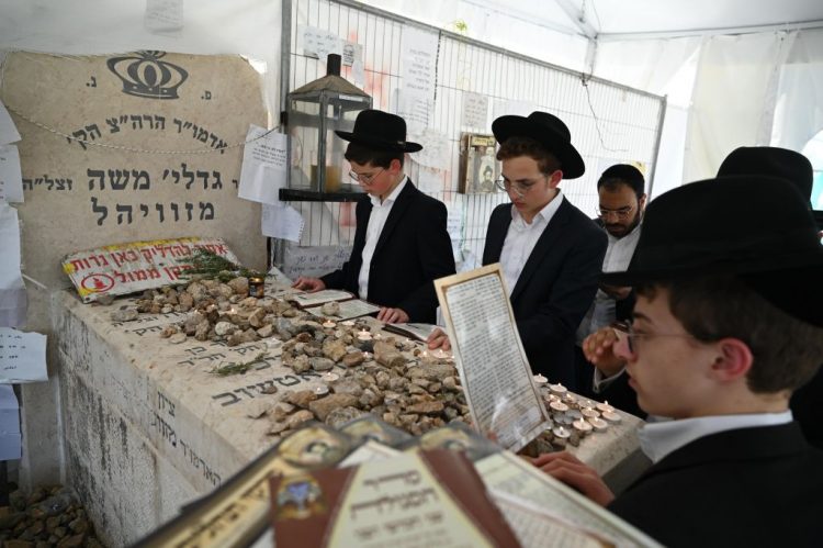 Jerusalem, 8 May, 2025 (TPS-IL) -- On May 8, 2025, yeshiva students pray at the Jerusalem grave of Rabbi Gedalia Moshe Goldman, a holy man and survivor of the Soviet gulag often referred to as “The Rebbe of Zvhil.” Photo by Yoav Dudkevitch/TPS-IL