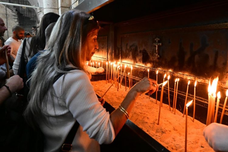 Jerusalem, 16 November, 2025 (TPS-IL) -- Worshipers light candles at St. George’s Greek Orthodox Church in Lod to mark the holiday of St. George on Nov. 16, 2025. Photo by Yossi Zeliger/TPS-IL
