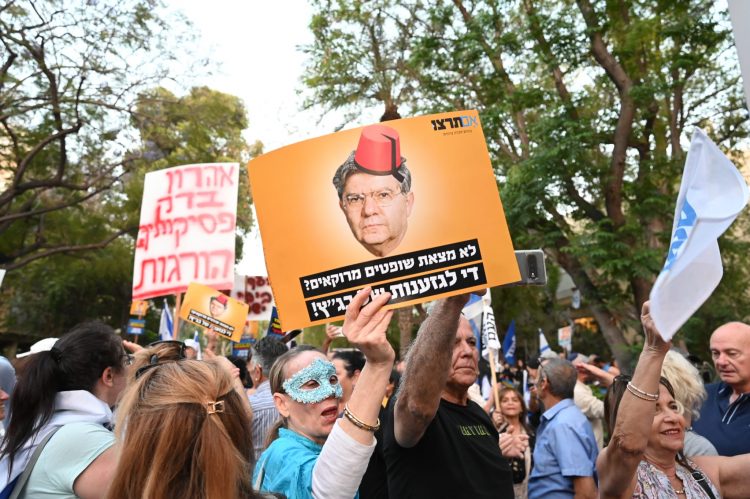 Government Supporters Demonstrate in front of the Home of Former Supreme Court President Aharon Barak