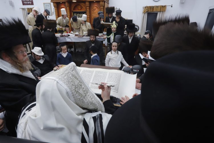 Here member of the Sassiv Hasidic group here the reading of the Megillah from their leader – “the Rebbe” – Rebbe Yosef David Teitelbaum.