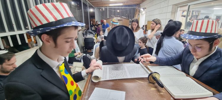 Jerusalem, 14 March, 2025 (TPS-IL) -- Israelis celebrate the holiday of Purim with the reading of the Book of Esther at a synagogue in Rosh HaAyin on March 13, 2025. The holiday marking the Jewish people’s survival from a plot to exterminate them in ancient Persia is celebrated with costumes, feasting and gifts of food and charity. Photo by Roey Basevich/TPS-IL
