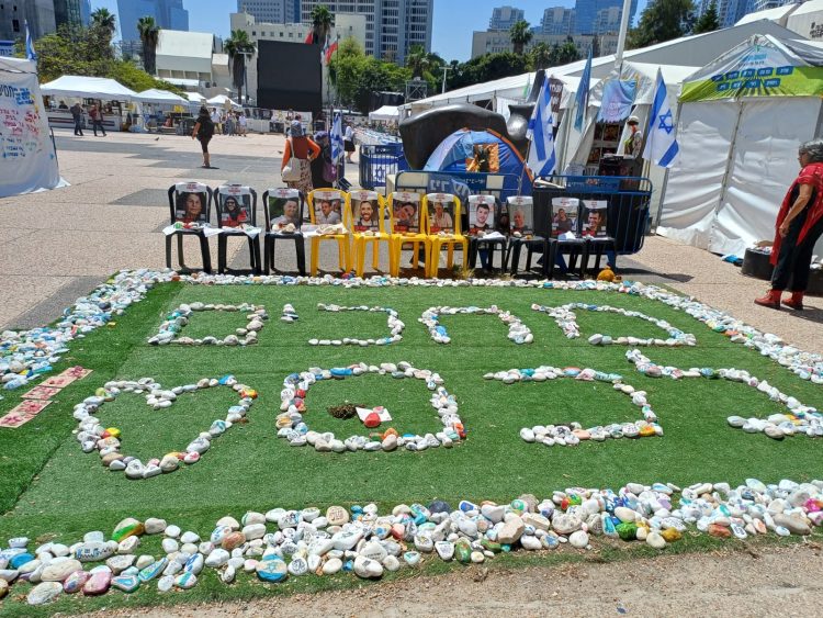 Jerusalem, 9 May, 2024 (TPS-IL) -- Hostages Square is located at the Tel Aviv Museum of Art in the public square in front of the museum’s entrance. It was established by Israelis after the October 7 Hamas terror massacre in support of the people taken hostage that day.