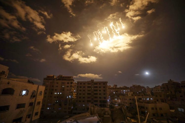 Jerusalem, 11 September, 2025 (TPS-IL) -- Israeli flares light the skies above Gaza City on Sept. 10, 2025. Photo by TPS-IL