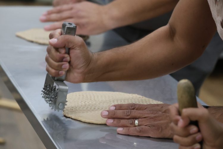 Jerusalem, 10 April, 2025 (TPS-IL) -- Baking Matzoth, the unleavened flatbread eaten on the Passover holiday, in the Yemenite style, in the village of Pedu’el in Samaria, ahead of Passover, which begins on April 12.