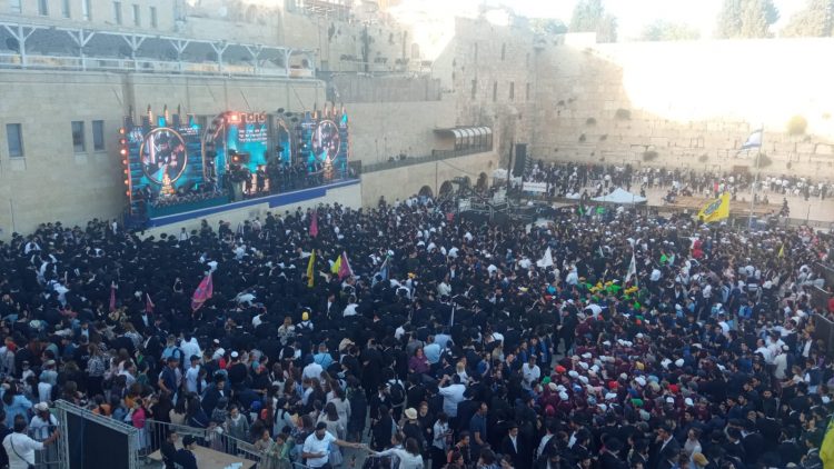 Masses Pack the Kotel Plaza for a Ceremony to Receive a New Tora Scroll