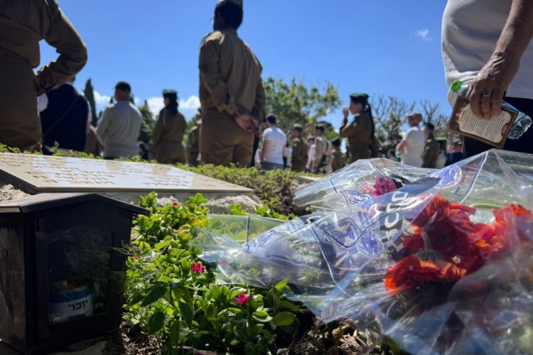 Jerusalem, 21 April, 2026 (TPS-IL) -- Israelis in Tel Aviv’s Kiryat Shaul Military Cemetery pause during a nationwide minute of silence in tribute to fallen soldiers on Memorial Day on April 21, 2026. Photo by Orly Wasserman/TPS-IL