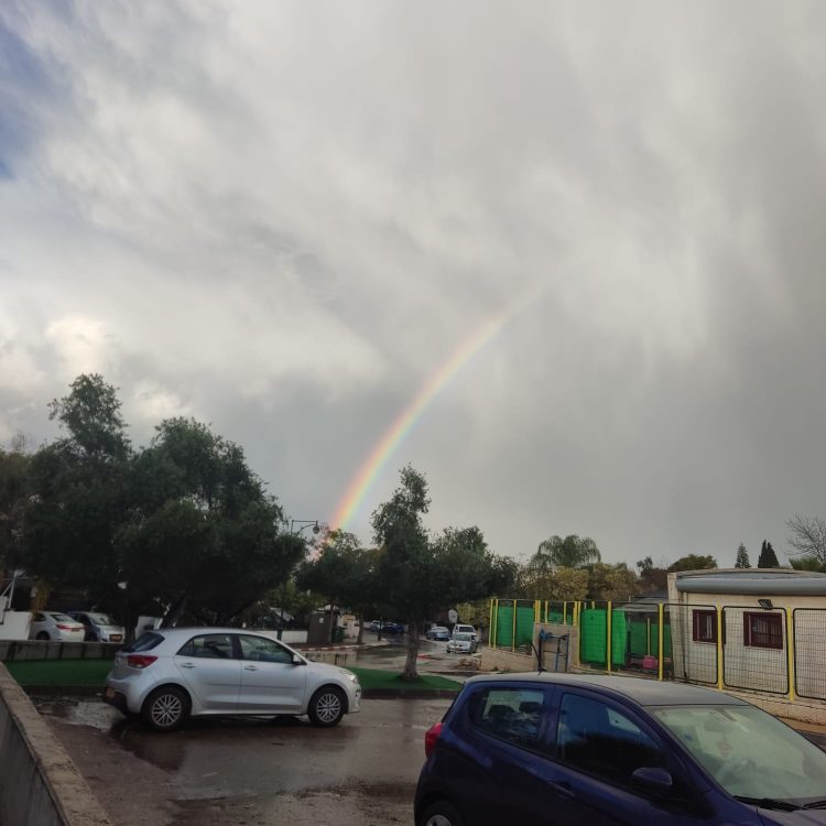 Rainbow over Pardes Hanna as Winter Weather Returns to Israel