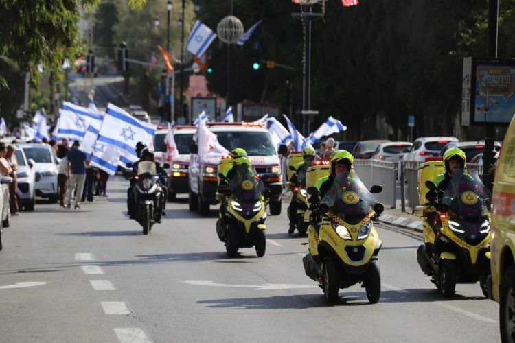 Jerusalem, 21 October, 2025 (TPS-IL) -- The funeral procession for fallen Israeli hostage Ronen Engel begins in Rishon LeZion on Oct. 21, 2025. Engel, of Kibbutz Nir Oz, was a photographer, motorcycle enthusiast and volunteer medic for Magen David Adom. Photo by Eitan Elhadez-Barak/TPS-IL