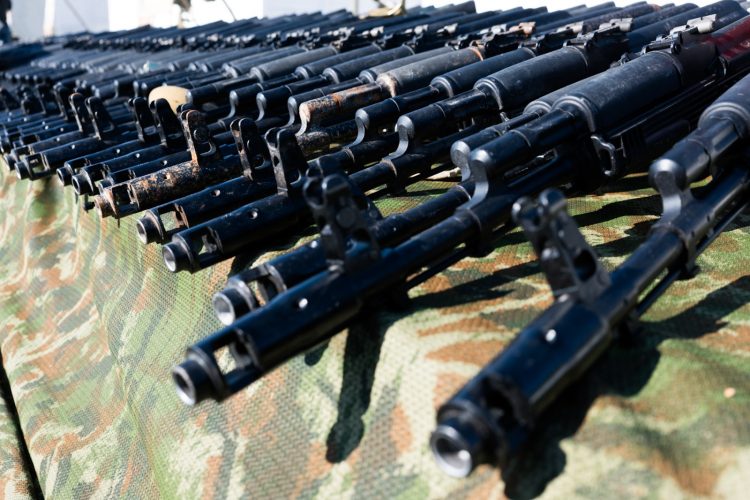 Jerusalem, 23 December, 2024 (TPS-IL) -- Captured Hezbollah rifles displayed by the Israel Defense Forces, among other weapons including truck-mounted rocket launchers, rocket-propelled grenades and mortars at Camp Amiad in northern Israel on Dec.23, 2024. Photo by Erez Ben Simon