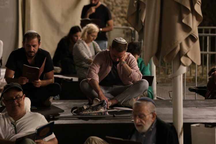 Jerusalem, 3 August, 2025 (TPS-IL) -- At the Western Wal in Jerusalem, Israelis mark Tisha B’Av, on Aug. 2, 2025, which commemorates the destruction of the First and Second Temples, and other tragedies which occurred on the ninth day of the Hebrew month of Av. Traditional customs of mourning apply during the day, most notably fasting from sundown to sundown and reading the Book of Lamentations. Photo by Eitan Elhadez-Barak/TPS-IL