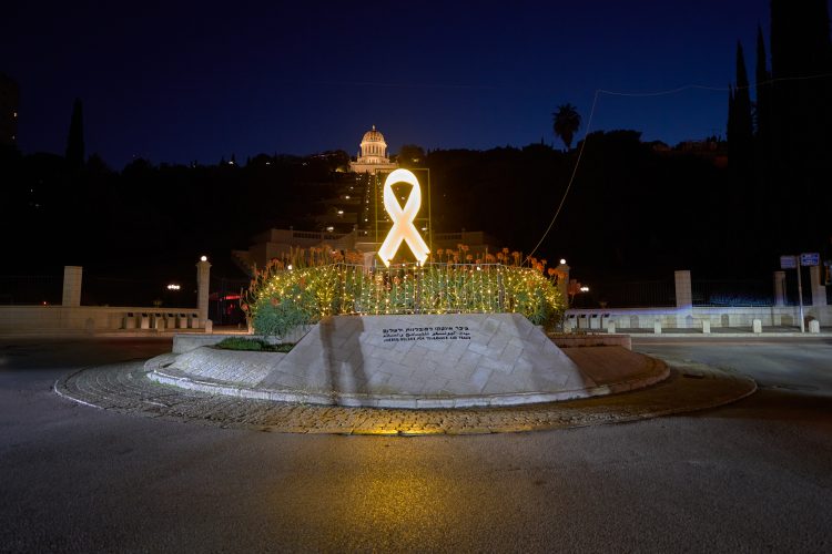 Jerusalem, 22 January, 2025 (TPS-IL) -- A yellow ribbon in solidarity with the Israeli hostages in Gaza lights up the Bahai Gardens in Haifa on Jan. 21, 2025. Photo by Sharon Leibel/TPS-IL
