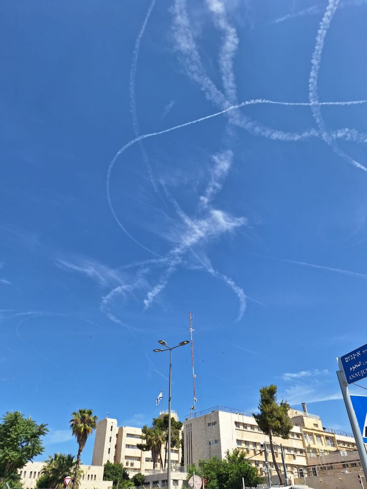 The Trails of Jets Flying Over Jerusalem