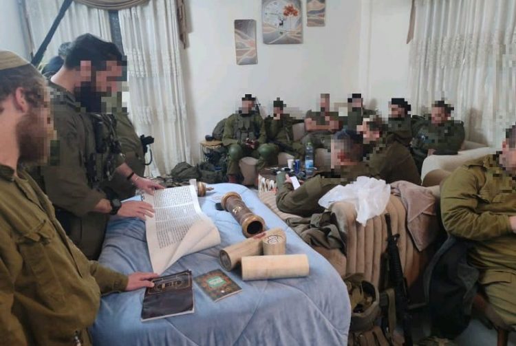 Jerusalem, 3 March, 2026 (TPS-IL) -- Israeli soldiers stationed in the Askar Palestinian refugee camp near Shechem (Nablus) celebrate the holiday of Purim with a reading of the Book of Esther on March 2, 2026. Purim celebrates the Jewish people’s survival from a plot to exterminate them in ancient Persia. Photo by TPS-IL