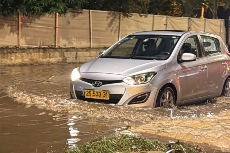 Jerusalem, 13 November, 2025 (TPS-IL) -- Winter rains flood a road in the Israeli town of Pardes Hanna on Nov. 13, 2025. Photo by TPS-IL