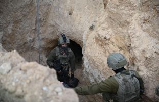 Soldier descend to the tunnel in the northern Gaza area of Shejaya on Feb. 23, 2026. Photo by Yoav Dudkevitch/TPS-IL