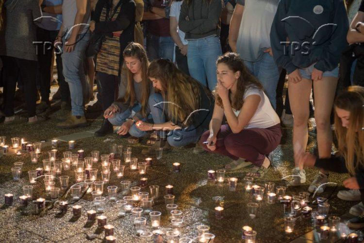 Students from Israeli pre-military academies light memorial candles in Tel Aviv on April 28, 2018 for ten students who were killed in a flash flood during a school hike near the Dead Sea. Photo by Kobi Richter/TPS