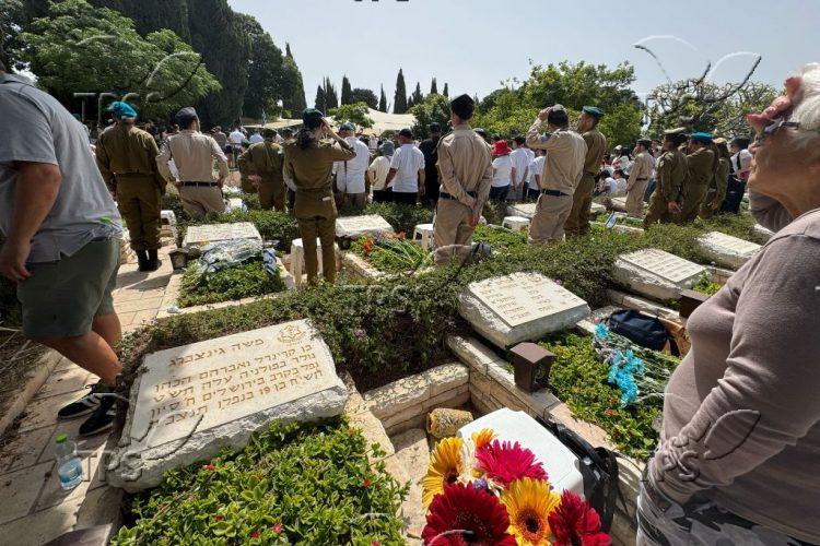 At Tel Aviv's Kiryat Shaul cemetery, Israelis pause in a national minute of silence in tribute to fallen soldiers and terror victims on Remembrance Day on April 30, 2025. Photo by Orly Wasserman/TPS-IL